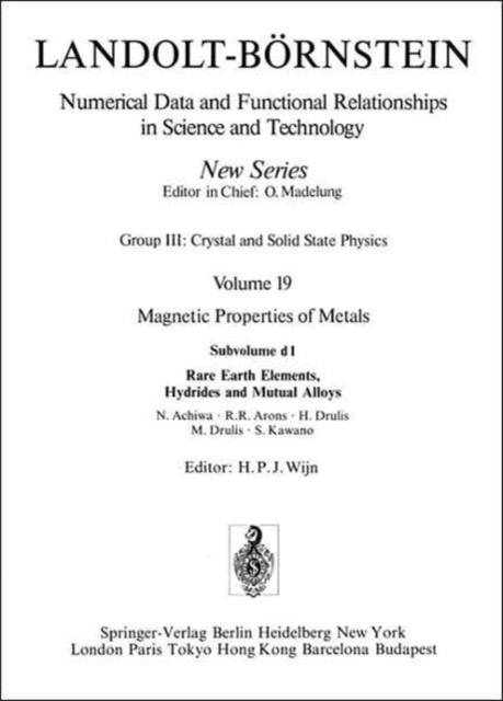 Volume 19 of Group III (Crystal and Solid State Physics) deals with magnetic properties of metals, alloys and metallic compounds. The amount of information available in this field is so substantial that several sub- volumes are needed to cover it all. Subvolumes III/19a through III/19f treat the intrinsic magnetic properties, i.e. those magnetic properties which depend only on the chemical composition and the crystal structure. So far, subvolumes III/19a, III/19b, III/19c, III/19d2, III/19e1 and III/19e2 have appeared. The present subvolume III/19d1 is concerned with rare earth elements, their hydrides, and alloys between rare earth elements. Subvolume III/19f where data of actinide elements are compiled and which also contains an index of substances for subvolumes III/19a...f, is due in the near future. Data on the properties that depend on the preparation of the samples measured, as for instance, thin films or liquid-quenched alloys have been published in subvolumes III/19g and III/19h. The magnetic alloys used in technical applications (soft and hard magnetic alloys, Invar and Elinvar alloys) will be dealt with in subvolume III/19i, the last of the subvolumes of III/19.