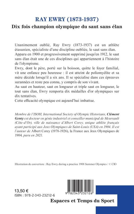 Unanimement oublié, Ray Ewry (1873-1937) est un athlète étasunien, spécialiste d'une discipline oubliée, le saut sans élan. Apparu en 1900 et progressivement supprimé jusqu'en 1912, le saut sans élan était une de ces disciplines qui appartiennent à l'histoire de l'olympisme. Ewry, dont le père, porté sur la boisson, quitte le foyer familial, vit une enfance peu heureuse: il est atteint de poliomyélite et sa mère décède lorsqu'il a six ans. Il se spécialise dans ces épreuves surannées et reste peu connu, y compris de son vivant. Au saut en hauteur, saut en longueur et triple saut en longueur, le tout sans élan, Ewry remporta dix médailles d'or olympiques sur dix tentatives. Cette efficacité olympique est aujourd'hui imbattue.