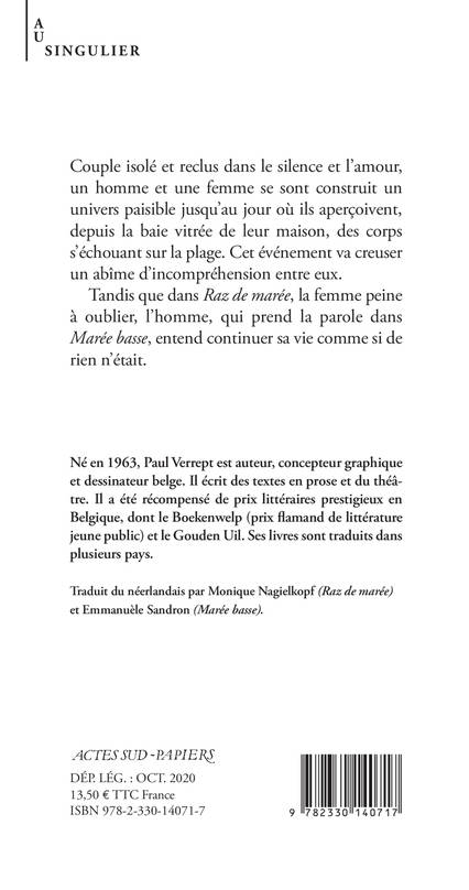Couple isolé et reclus dans le silence et l'amour, un homme et une femme se sont construit un univers paisible jusqu'au jour où ils aperçoivent, depuis la baie vitrée de leur maison, des corps s'échouant sur la plage. Cet évènement va creuser un abîme d'incompréhension entre eux. Tandis que dans «Raz de marée», la femme peine à oublier, l'homme, qui prend la parole dans «Marée basse», entend continuer sa vie comme si de rien n'était.