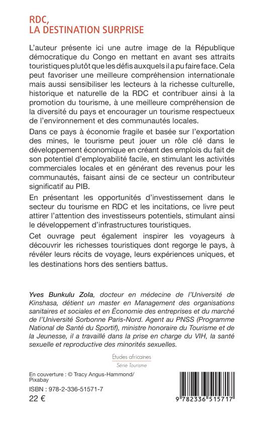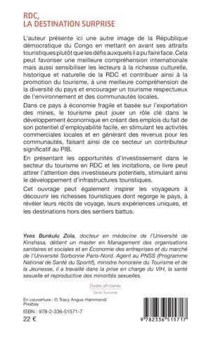 L'auteur présente ici une autre image de la République démocratique du Congo en mettant en avant ses attraits touristiques plutôt que les défis auxquels il a pu faire face. Cela peut favoriser une meilleure compréhension internationale mais aussi sensibiliser les lecteurs à la richesse culturelle, historique et naturelle de la RDC et contribuer ainsi à la promotion du tourisme, à une meilleure compréhension de la diversité du pays et encourager un tourisme respectueux de l'environnement et des communautés locales. Dans ce pays à économie fragile et basée sur l'exportation des mines, le tourisme peut jouer un rôle clé dans le développement économique en créant des emplois du fait de son potentiel d'employabilité facile, en stimulant les activités commerciales locales et en générant des revenus pour les communautés, faisant ainsi de ce secteur un contributeur significatif au PIB. En présentant les opportunités d'investissement dans le secteur du tourisme en RDC et les incitations, ce livre peut attirer l'attention des investisseurs potentiels, stimulant ainsi le développement d'infrastructures touristiques. Cet ouvrage peut également inspirer les voyageurs à découvrir les richesses touristiques dont regorge le pays, à révéler leurs récits de voyage, leurs expériences uniques, et les destinations hors des sentiers battus.