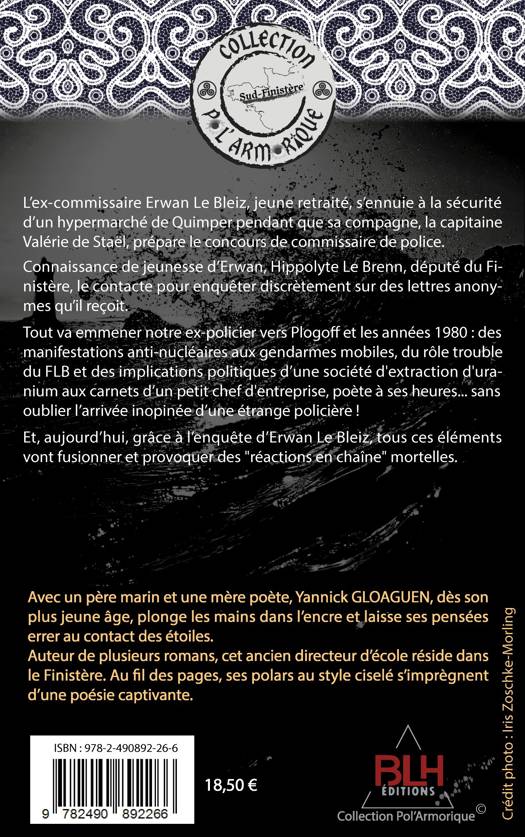 L’ex-commissaire Erwan Le Bleiz, jeune retraité, s’ennuie à la sécurité d’un hypermarché de Quimper pendant que sa compagne, la capitaine Valérie de Staël, prépare le concours de commissaire de police. Connaissance de jeunesse d’Erwan, Hippolyte Le Brenn, député du Finistère, le contacte pour enquêter discrètement sur des lettres anonymes qu’il reçoit. Tout va emmener notre ex-policier vers Plogoff et les années 1980 : des manifestations anti-nucléaires aux gendarmes mobiles, du rôle trouble du FLB et des implications politiques d’une société d'extraction d'uranium aux carnets d’un petit chef d'entreprise, poète à ses heures... Et, aujourd’hui, grâce à l’enquête d’Erwan Le Bleiz, tous ces éléments vont fusionner et provoquer des "réactions en chaîne" mortelles.