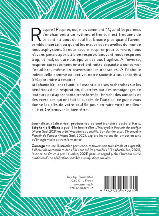 Respire ! Respirer, oui, mais comment ? Quand les journées s'enchaînent à un rythme effréné, il est fréquent de se sentir à bout de souffle. Encore plus quand l'avenir semble incertain ou quand les mauvaises nouvelles du monde nous asphyxient. Si nous savons respirer pour survivre, nous n'avons jamais appris à bien respirer. Souvent nous respirons trop, et mal, ce qui nous épuise et nous fragilise. À l'inverse, respirer correctement entretient notre capacité à conserver l'équilibre, même en traversant les obstacles. À l'échelle individuelle comme collective, notre société a tout intérêt à (ré)apprendre à respirer ! Stéphanie Brillant réunit ici l'essentiel de ses recherches sur les bénéfices de la respiration, illustrées par des témoignages de lecteurs et d'apprenants transformés. Enrichi des conseils et des exercices qui ont fait le succès de l'autrice, ce guide vous donne les clés de votre souffle pour en faire votre meilleur allié et (re)trouver le bien-être.