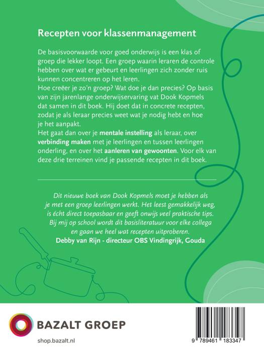 Hoe creëer je zo’n groep? Wat doe je dan precies? Op basis van zijn jarenlange onderwijservaring vat Dook Kopmels dat samen in dit boek. Hij doet dat in concrete recepten, zodat je als leraar precies weet wat je nodig hebt en hoe je het aanpakt.