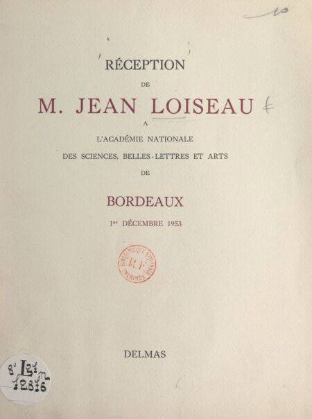 Réception de M. Jean Loiseau à l'Académie nationale des sciences, belles-lettres et arts de Bordeaux, 1er décembre 1953 E-BOOK