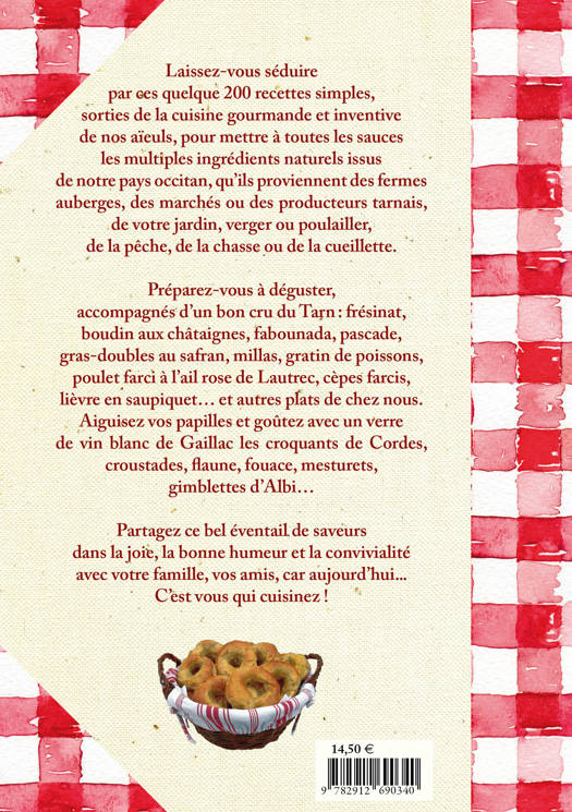Laissez-vous séduire par ces quelque 200 recettes simples, sorties de la cuisine gourmande et inventive de nos aïeuls, pour mettre à toutes les sauces les multiples ingrédients naturels issus de notre pays occitan, qu’ils proviennent des fermes auberges, des marchés ou des producteurs tarnais, de votre jardin, verger ou poulailler, de la pêche, de la chasse ou de la cueillette.