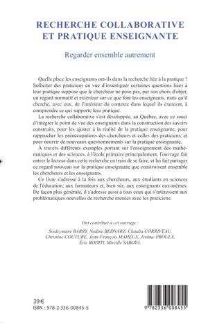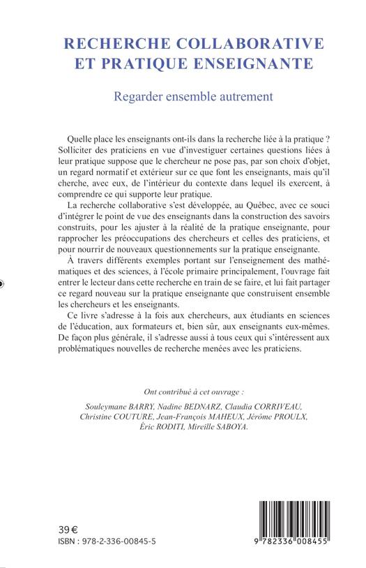 Quelle place les enseignants ont-ils dans la recherche liée à la pratique? La recherche collaborative s'est développée, au Québec, avec ce souci d'intégrer le point de vue de ces-derniers dans l'élaboration des savoirs construits. Cet ouvrage transmet au lecteur ce regard nouveau sur la pratique enseignante que construisent ensemble chercheurs et enseignants.