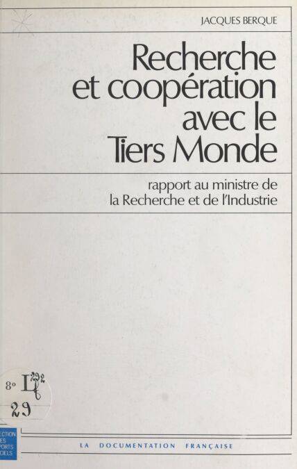 Le rapport de la mission d’étude “Recherche, technologie et progrès en coopération”, présidée par le professeur Jacques Berque, articule son analyse autour des cinq thèmes suivants : “les espaces” de la politique française de recherche en coopération avec le Tiers Monde ; les différents champs sectoriels : le domaine des recherches en coopération, les thèmes à approfondir, les liaisons inter-organismes et la réponse aux demandes des trois continents ; les personnels de la coopération scientifique et technologique et les réformes statutaires proposées ; la formation des chercheurs des pays en développement ; le dispositif scientifique et technologique français, face aux objectifs de la nouvelle politique de coopération scientifique et technologique ; le financement des propositions avancées par la mission d’étude.