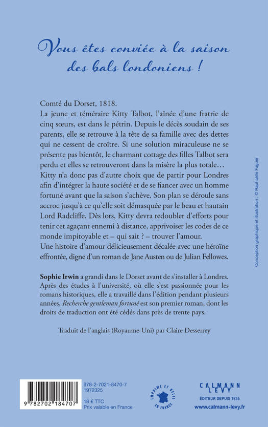 Kitty n’a donc pas d’autre choix que de partir pour Londres afin d’intégrer la haute société et de se fiancer avec un homme fortuné avant que la saison s’achève. Son plan se déroule sans accroc jusqu’à ce qu’elle soit démasquée par le beau et hautain Lord Radcliffe. Dès lors, Kitty devra redoubler d’efforts pour tenir cet agaçant ennemi à distance, apprivoiser les codes de ce monde impitoyable et – qui sait ? – trouver l’amour.