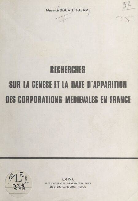 Recherches sur la genèse et la date d'apparition des corporations médiévales en France E-BOOK