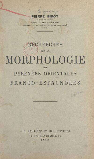 5. Recherches sur la morphologie des Pyrénées orientales franco-espagnoles