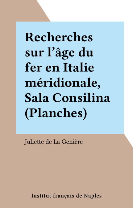 Recherches sur l'âge du fer en Italie méridionale, Sala Consilina (Planches) E-BOOK