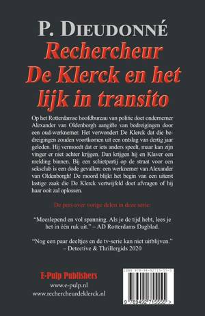 "Het lijkt erop dat P. Dieudonné elk jaar twee boeken over de Rotterdamse rechercheur De Klerck wil publiceren. Dat valt alleen maar toe te juichen. Niet alleen omdat hij daarmee nog meer in de voetsporen treedt van zijn grote voorbeeld Appie Baantjer, maar vooral omdat Dieudonné vlot leesbare, ingenieus opgezette en verrassende politieromans schrijft, waarvan je er jaarlijks wel meer wilt lezen. Gelukkig is deel vier Rechercheur De Klerck en het lijk in transito er nu." – Detective & Thrillergids