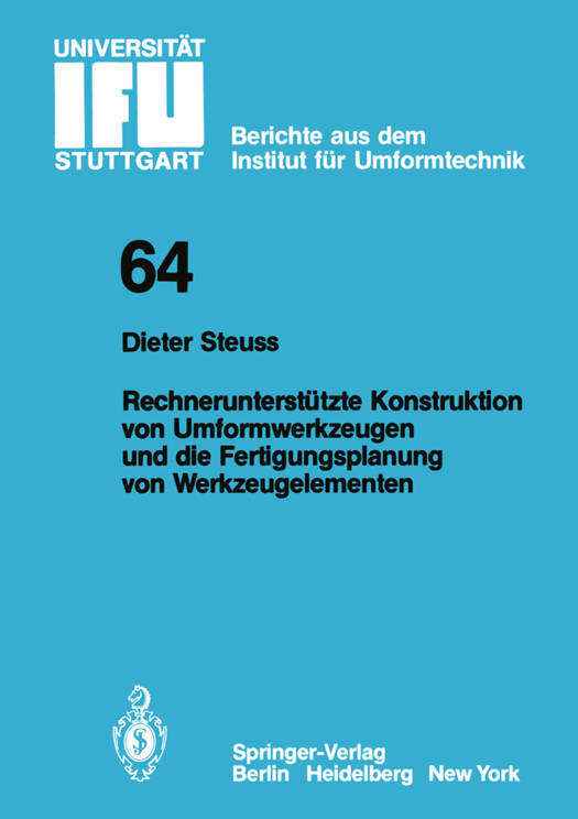 Die vorliegende Arbeit entstand während meiner Tätigkeit als externer Mitarbeiter am Institut für Umformtechnik an der Uni- versität Stuttgart. Herrn Professor Dr. -Ing. K. Lange danke ich sehr herzlich für sein Vertrauen, seine stete Unterstützung und wertvollen Anre- gungen bei der Anfertigung dieser Arbeit. Herrn Professor Dr. -Ing. A. Jung und Herrn Professor Dr. -Ing. K. Langenbeck bin ich für die eingehende Durchsicht der Arbeit und den damit verbundenen Hinweisen zu Dank verpflichtet. Der Geschäftsleitung des Filterwerkes Mann und Hummel danke ich für das Entgegenkommen bei der Anfertigung. dieser Arbeit. Ferner gilt mein Dank allen Mitarbeiterinnen und Mitarbeitern des Instituts für Umformtechnik, die zum Gelingen der Arbeit beigetragen haben. Stuttgart, Juni 1982 Dieter Steuss Inhaltsverzeichnis Seite Verzeichnis der wichtigsten Abkürzungen 14 o Einleitung 17 Analyse der Rationalisierungsmotive 19 bei der Herstellung von Umformwerkzeugen 19 1. 1 Direkt marktabhängige Unternehmen 1 . 2 Zulieferunternehmen 19 1 . 2. 1 Produktinformation 19 1. 2. 2 Stück- und Fertigungsmittelkosten 22 22 1. 2. 3 Terminvorgabe 2 Organisatorische Eingliederung der Fer- 23 tigungsmittelbereitstellung im Unternehmen 23 2. 1 Informationsfluß 3 Rationalisierungsschwerpunkte bei der Fer- 27 tigungsmittelbereitstellung 3. 1 Zielsetzung 29 4 Konventionelle Konstruktion von Umform- 30 werkzeugen 4. 1 Konstruktionsphasen 30 Konstruktionsarten 30 4. 2 4. 3 Komplexitätsgrad 33 4. 4 Zeichnungsarten 33 Rationalisierungsmöglichkeiten in der kon- 4. 5 35 ventionellen Umformwerkzeugkonstruktion 4. 5. 1 Zeichnungsvereinfachung 36 4. 5. 2 Tabellarische Lösungssammlung 39 4. 5. 3 Vereinheitlichung von Umformwerkzeug- 39 konstruktionen 4. 5. 4 Maßberechnungsrichtlinien 40 47 4.