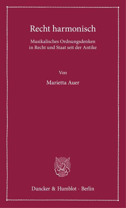 English summary: Law and Harmony. Musical Ordering, the Law and the State Since Antiquity The connections between law and music are almost limitless. Marietta Auer shows that these diverse connections and relations, ranging from questions of language, script, interpretation and aesthetics to mathematical laws of harmonic proportion, are fundamental to understanding legal orders. German description: Die Beziehungen zwischen Recht und Musik sind fast unuberschaubar zahlreich. Sie finden sich in den Lebensspuren von Musikerjuristen und Juristenmusikern ebenso wie in juristischen Sujets in Musikwerken von Mozart uber Wagner bis Schonberg bis hin zu rechtsmusikalischen Vergleichen wie demjenigen zwischen Richter und Pianist, der in deutschen Juristenkreisen vor einiger Zeit fur einen kleinen Skandal sorgte. Marietta Auer zeigt, dass die vielfaltigen Beziehungen zwischen Recht und Musik, die von Fragen der Sprache, Schrift, Interpretation und Asthetik bis hin zu mathematischen Gesetzen harmonischer Proportion reichen, fundamental fur das Sinnverstandnis rechtlicher und staatlicher Ordnungen sind. Ideengeschichtlicher Ausgangspunkt ist die pythagoreische Musikwissenschaft der Antike und des Mittelalters, deren Erkenntnisse durch christliche und judische Renaissanceautoren in die Staatstheorie der fruhen Neuzeit gelangten und von dort aus bis in das Rechtsdenken der Gegenwart wirken.