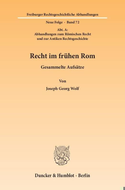 Der Sammelband 'Recht im frühen Rom' enthält Aufsätze und Vorträge, die in verschiedenen Zeitschriften, Festschriften und Akademieabhandlungen veröffentlicht worden sind. Hinzugefügt habe ich fünf bisher unveröffentlichte Vorträge, die ich vor einigen Jahren an verschiedenen Orten gehalten habe. Es schien mir angebracht, die so weit verstreuten Arbeiten in einem Sammelband zusammenzufassen.