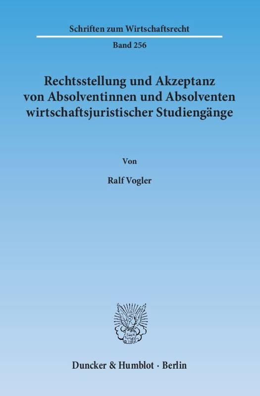 Abseits interessengeleiteter Postulate seitens der Anwaltschaft und der juristischen Fakultäten wurde die Rechtsstellung und Arbeitsmarktakzeptanz von Wirtschaftsjuristen bislang nicht untersucht. Der Autor analysiert die Thematik erstmalig hochschulübergreifend und stellt überzeugend die Marktfähigkeit der interdisziplinär ausgebildeten Wirtschaftsjuristen dar. Hierbei diskutiert er sowohl Erfolgsfaktoren als auch die im weitesten Sinne berufsrechtlichen Restriktionen.