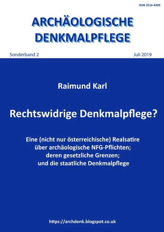 Die (österreichische) archäologische Denkmalpflege befindet sich in einer schweren Krise: das ursprünglich 1923 erstmals erlassene und seither nur unwesentlich novellierte Denkmalschutzgesetz (DMSG) ist hochgradig veraltet und genügt modernen denkmalpflegerischen und wissenschaftlich-archäologischen Erfordernissen nicht mehr. Als reaktives Gesetz beruht das DMSG in erster Linie auf dem traditionellen Schutzlistenprinzip; im Bereich der archäologischen Denkmalpflege ergänzt um eine Meldepflicht für Zufallsfunde und damit verbundene, kurzfristige Arbeitseinstellungspflichten bei der zufälligen Entdeckung sogenannter "Bodendenkmale". Das war 1923, als selbst Baugruben noch mehrheitlich von Arbeitern händisch mit der Spitzhacke und Schaufel ausgehoben wurden, durchaus adäquat, weil allfällig durch Bauarbeiten betroffene archäologische Denkmale dabei unweigerlich auffielen und daher - als Zufallsfunde - geschützt waren. Heute hingegen sind Bau-, Land- und Forstwirtschaft durchgehend maschinisiert und industrialisiert und Zufallsfunde archäologischer Denkmale kommen daher bei bodenverändernden Arbeiten so gut wie gar nicht mehr vor, weil allfällig vorhandene archäologische Denkmale von den Arbeitern einfach nicht bemerkt werden. Es bedarf daher heute eines präventiven archäologischen Denkmalschutzes, bei dem vorausschauend vor bodenverändernden Arbeiten nach archäologischen Überresten gesucht und diese erforderlichenfalls vor Beginn der Erdarbeiten wissenschaftlich erforscht (d.h. ausgegraben) werden. Das DMSG und insbesondere seine Auslegung durch die für seinen Vollzug verantwortliche Behörde, das Bundesdenkmalamt, behindern eine derartige, moderne präventive archäologische Denkmalpflege massiv. Stattdessen versucht die Behörde mittels des inzwischen untauglichen Gesetzes einen totalen Denkmalschutz zu erreichen, der dem explizit ausgedrückten Willen des Gesetzgebers diametral widerspricht und betreibt somit rechtswidrige Denkmalpflege.