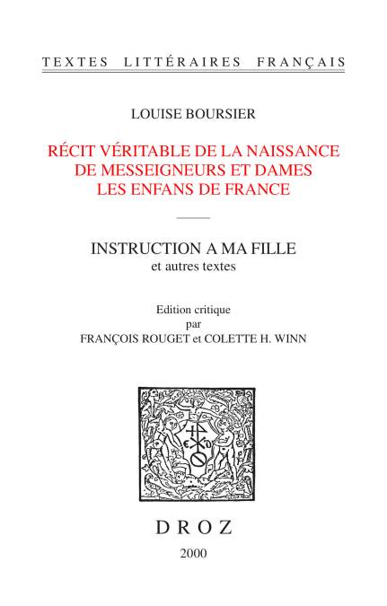 Louise Bourgeois, dite Boursier (1563-1636), est connue aujourd’hui non seulement pour avoir présidé aux six couches de Marie de Médicis, mais aussi pour être la première femme de son art à relater ses expériences professionnelles par écrit. Les cinq textes reproduits ici restituent le cheminement médical, social et littéraire d’une femme exceptionnelle. Cette édition critique comprend une introduction, des notes substantielles, divers documents iconographiques, un répertoire des traités d’accouchement et autres travaux relatifs à l’obstétrique, un index, une bibliographie sélective et le Serment de Saint-Quentin reproduit en appendice.