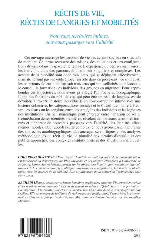 Mobilités et migrations collectives et individuelles, organisées ou désorganisées, choisies ou subies, s'inscrivent dans une longue histoire des mouvances, des errances, flux et reflux des hommes. Le terme de mobilité est ici préféré à migration, trop connoté idéologiquement. Cette complexité est appréhendée par des approches autobiographiques, des analyses méthodologiques de récits de vie, dans une pluralité de terrains d'enquêtes et de publics approchés, de contextes institutionnels et de situations individuelles.