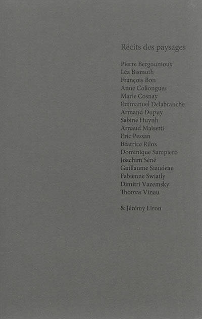 S'inspirant des oeuvres présentées par Jérémy Liron lors d'une exposition à la galerie Isabelle Gounod, 17 auteurs proposent en prose ou en vers une interprétation des mêmes thèmes : le paysage, l'espace et le monde.