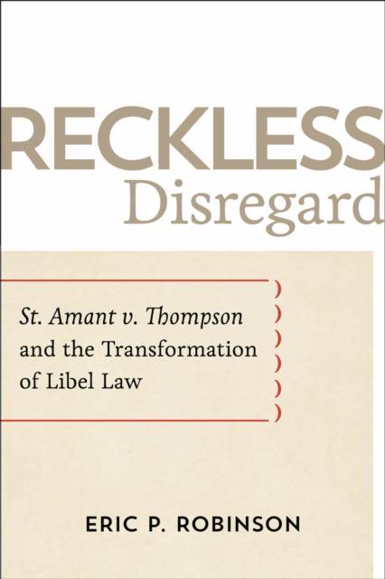 In the years following the landmark United States Supreme Court decision on libel law in New York Times v. Sullivan, the court ruled on a number of additional cases that continued to shape the standards of protected speech. As part of this key series of judgments, the justices explored the contours of the Sullivan ruling and established the definition of "reckless disregard" as it pertains to "actual malice" in the case of St. Amant v. Thompson. While an array of scholarly and legal literature examines Sullivan and some subsequent cases, the St. Amant case--once called "the most important of the recent Supreme Court libel decisions"--has not received the attention it warrants. Eric P. Robinson's Reckless Disregard corrects this omission with a thorough analysis of the case and its ramifications.