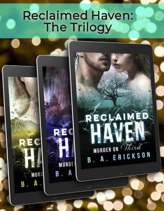 This set includes the entire Reclaimed Haven Trilogy: Murder on First, Murder on Second, and Murder on Third.