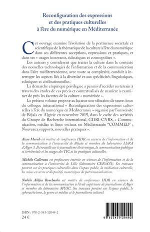 Cet ouvrage examine l'évolution de la pertinence sociétale et scientifique de la thématique de la culture à l'ère du numérique. Les auteurs y considèrent que traiter la culture dans le contexte des nouvelles technologies de l'information et de la communication dans l'aire méditerranéenne, avec toute sa complexité, conduit à interroger les aspects liés à la diversité et aux spécificités linguistiques, ethniques et civilisationnelles. Privilégiant une démarche empirique, les auteurs, à travers des études de cas précis, examinent de près les facettes de la culture "numérisée".