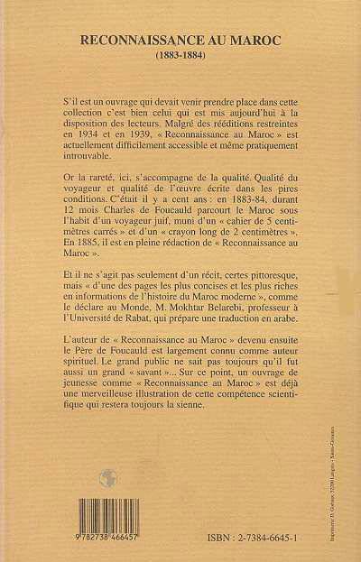 En 1883-1884, durant douze mois Charles de Foucauld parcourt le Maroc sous l'habit d'un voyageur juif, muni d'un " cahier de cinq centimètres carrés " et d'un " crayon long de deux cm". En 1885, il est en pleine rédaction de "Reconnaissance au Maroc". Il s'agit d'une des pages les plus concises et les plus riches en informations de l'histoire du "Maroc Moderne", comme le déclare au Monde, M. Mokhtar Belarebi, professeur à l'université de Rabat, qui prépare une traduction en arabe.