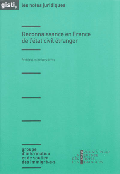 Cette publication, élaborée par le Gisti et l'ADDE, est découpée en deux parties. La première présente de manière synthétique les grands principes de reconnaissance de l'état civil étranger (actes ou jugements étrangers). La seconde rassemble un grand nombre de décisions liées à des questions relatives à l'état civil étranger classées par type de contentieux : demande de visa ou de demande de regroupement familial, preuve de la minorité, transcription ou rectification des actes, jugement déclaratif ou supplétif, nationalité, droit au séjour.