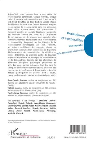 Aujourd'hui, nous sommes face à une quête de reconnaissance généralisée. Chaque individu, chaque collectif souhaite voir reconnaître ce qu'il est, ce qu'il fait. Objets de luttes, ce désir d'estime sociale intègre des éléments du passé et de l'avenir. Comment analyser ces demandes de reconnaissance sans être prisonnier d'une vision à court terme, d'un présentéisme? L'originalité de cet ouvrage est de proposer une approche info-communicationnelle des relations entre reconnaissance et temporalités.