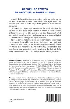 Le droit de la santé est un champ très vaste qui renferme en soi divers aspects de la santé. Comme corpus de règles juridiques destiné à la santé, il reste en parfaite symbiose avec d’autres domaines. Les textes juridiques qui permettent la matérialisation de ce droit au Mali sont assez nombreux, même si leurs sources d’élaboration peuvent être des plus variées. Cependant, c’est surtout la disparité des textes sur la santé qui peut rendre difficiles la connaissance ou l’usage des règles édictées. Il a donc paru indispensable aux auteurs d’élaborer un ouvrage rassemblant l’ensemble des textes juridiques qui régissent la santé au Mali. Ainsi, ce recueil est un panorama des règles juridiques, tant nationales qu’internationales, à destination des chercheurs, des universitaires, des praticiens, des décideurs des politiques publiques, des législateurs.