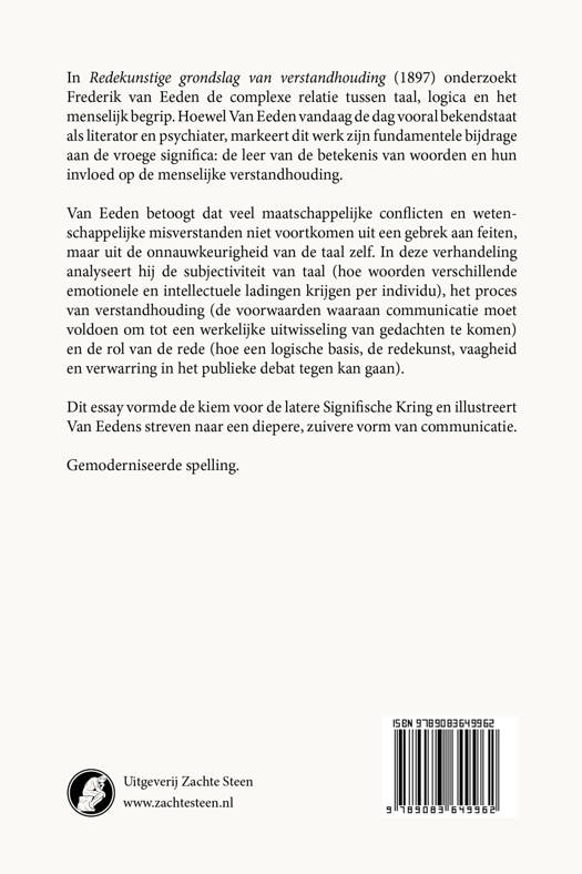 In Redekunstige grondslag van verstandhouding (1897) onderzoekt Frederik van Eeden de complexe relatie tussen taal, logica en het menselijk begrip. Hoewel Van Eeden vandaag de dag vooral bekendstaat als literator en psychiater, markeert dit werk zijn fundamentele bijdrage aan de vroege significa: de leer van de betekenis van woorden en hun invloed op de menselijke verstandhouding.