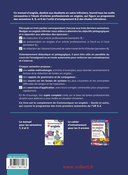 Ce livre d’anglais, destiné aux étudiants en soins infirmiers, fournit tous les outils nécessaires à l’étude d’articles professionnels en anglais, qui figure au programme des semestres 4, 5, et 6 de l’unité d’enseignement 6.2 en IFSI.