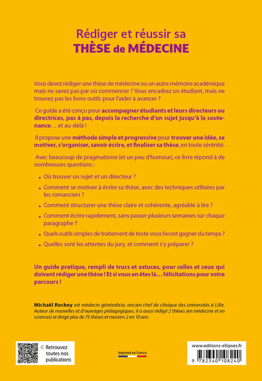 Il propose une méthode simple et progressive pour trouver une idée, se motiver, s’organiser, savoir écrire, et finaliser sa thèse, en toute sérénité.
