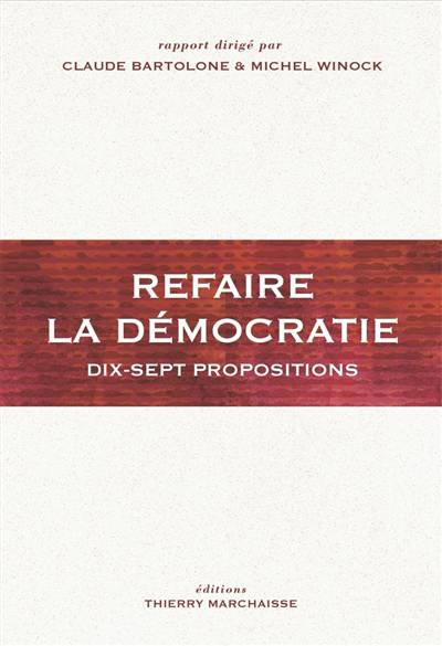 Le constat est sans appel : les institutions de la Ve République se trouvent, aujourd'hui, au coeur de ce qu'il est convenu d'appeler la « crise ». Que faire lorsque cette crise devient si profonde qu'elle mine le lien social et remet en cause l'idée même de représentation ? Formé à l'initiative du Président de l'Assemblée nationale, M. Claude Bartolone, co-présidé par l'historien Michel Winock, regroupant des parlementaires de tous les groupes politiques et des personnalités issues d'horizons très divers, le groupe de travail sur l'avenir des institutions a mené, pendant plus d'un an, une large réflexion sur ce thème. Fruit de ce travail, ce rapport propose un état des lieux de la situation politique et institutionnelle de la France et avance dix-sept propositions pour restaurer la confiance des citoyens dans leurs institutions. Il se veut une « boîte à outils », une contribution au grand débat que chacun attend sur le fonctionnement de notre démocratie. Aux citoyens de s'emparer désormais de ces propositions. Michel WiINOCK est historien, spécialiste de l'époque contemporaine, professeur émérite à l’Institut d’études politiques de Paris. Claude BARTOLONE né le 29 juillet 1951 à Tunis, est Président de l'Assemblée nationale depuis 2012.