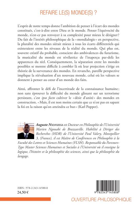 L'on a l'habitude de dire que les philosophes ne font qu'interpréter le monde sans le transformer. Cette position marxienne sur la marche du monde s'est aussi révélée inopérante aujourd'hui. Plutôt, le moment est venu de refaire les mondes au moyen de la dialogique de la matière et la manière. Cette théorie de la projectibilité débouche tout naturellement sur l'avènement de la mondialogie, c'est-à-dire notre capacité à anticiper, inventer, imaginer des nouvelles pistes refondatrices de notre monde en vue d'accéder au bonheur de tous.