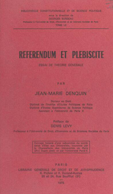 Référendum et Plébiscite : essai de théorie générale E-BOOK