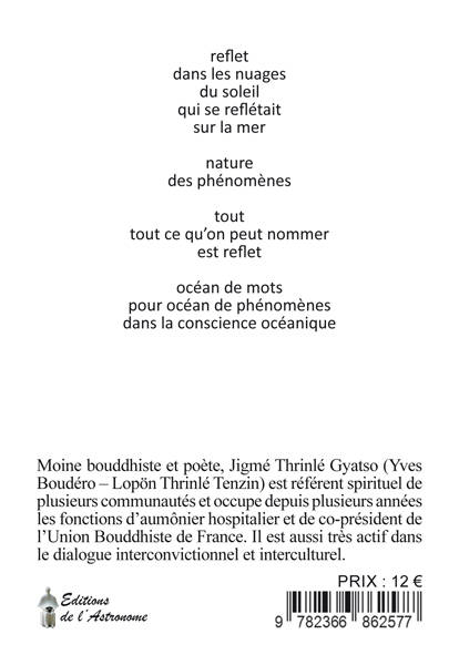 reflet dans les nuages du soleil qui se reflétait sur la mer nature des phénomènes tout tout ce qu’on peut nommer est reflet océan de mots pour océan de phénomènes dans la conscience océanique