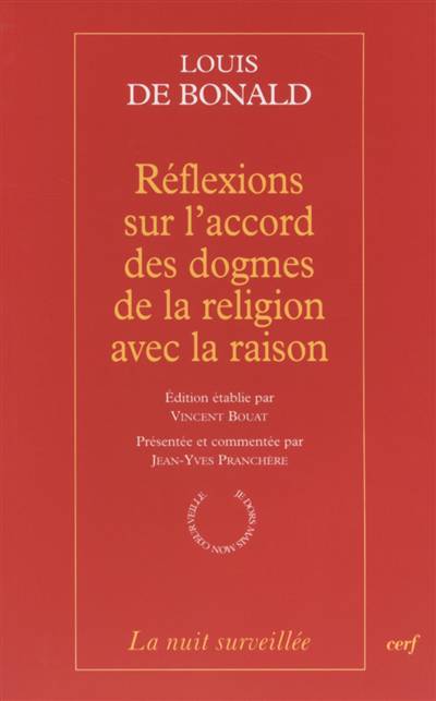 On présente souvent Louis de Bonald (1754-1840) comme un traditionaliste, partisan de la contre-révolution la plus radicale. Ainsi cet ultra, qui réclamait que la Déclaration des droits de l'homme fût renversée par la « Déclaration des droits de Dieu », a-t-il été salué par Carl Schmitt comme une des figures essentielles de la théologie politique. Les « Réflexions sur l'accord des dogmes de la religion avec la raison », rédigées dans les années 1810 et restées jusqu'à ce jour inédites, montrent que la théologie politique de Bonald ne se réduit pas à une posture réactionnaire. Son objet propre est la correspondance structurelle de la société religieuse et de la société politique. Ce principe directeur d'une sociologie générale (qui valut à Bonald l'admiration d'Auguste Comte et de Balzac) réclame que la foi montre son accord avec la science de la réalité humaine. Le manuscrit publié ici fonde la légitimité sociale de la religion dans le pouvoir qu'elle donne à la raison sur les individus. La vérité du christianisme s'établit ainsi sur la triple exigence de la raison : théorique, morale et sociale. La transcendance divine se révèle dans l'autonomie de la raison, car l'impératif moral de la rationalité ne peut s'accomplir que dans la religion de l'amour du prochain.