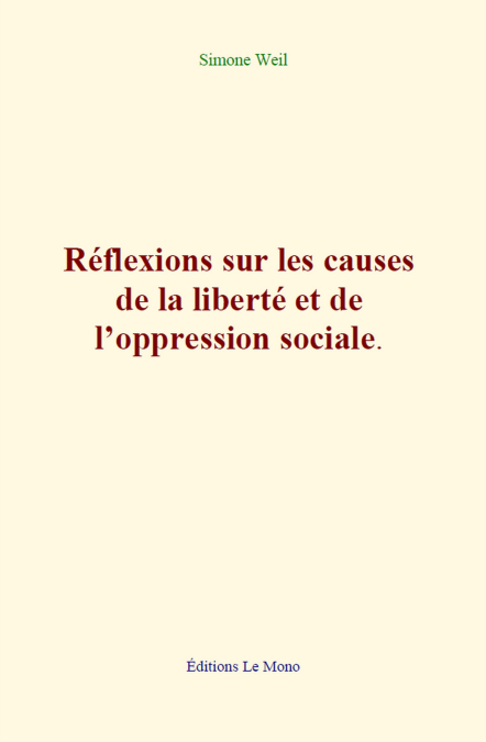 Il faut poser le problème fondamental, à savoir en quoi consiste le lien qui semble jusqu'ici unir l'oppression sociale et le progrès dans les rapports de l'homme avec la nature. Si l'on considère en gros l'ensemble du développement humain jusqu'à nos jours, si surtout l'on oppose les peuplades primitives, organisées presque sans inégalité, à notre civilisation actuelle, il semble que l'homme ne puisse parvenir à alléger le joug des nécessités naturelles sans alourdir d'autant celui de l'oppression sociale, comme par le jeu d'un mystérieux équilibre...