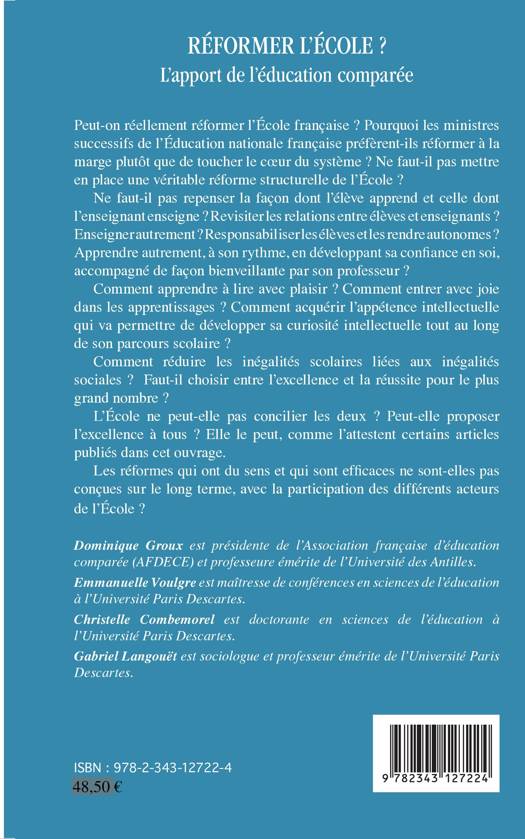 Peut-on réellement réformer l'École française ? Repenser la façon dont l'élève apprend et celle dont l'enseignant enseigne ? Apprendre autrement, à son rythme, avec bienveillance, responsabiliser, développer l'estime de soi, mais aussi apprendre avec plaisir, réduire les inégalités... Comment réduire les inégalités scolaires liées aux inégalités sociales ? Faut-il choisir entre l'excellence et la réussite pour le plus grand nombre ?