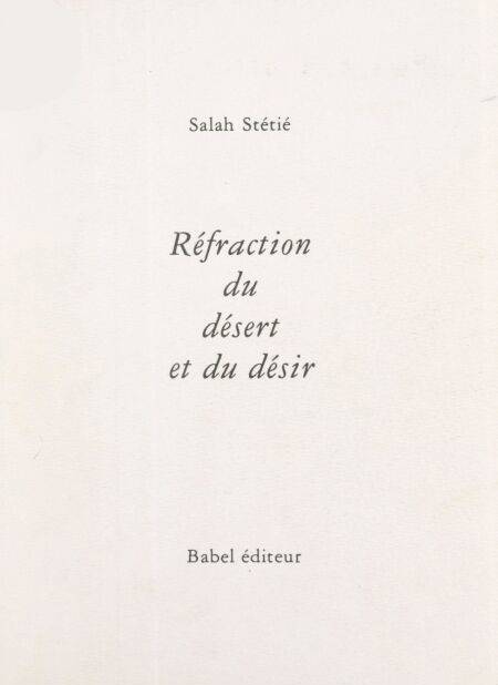 Les thèmes du désert et du désir apparaissent à Salah Stétié à la fois dialectiquement liés, et présents au cœur de toute démarche poétique, de toute mystique aussi bien, comme le manifestent leurs formulateurs. Ainsi, Jouve, Bonnefoy, Du Boucher, St-John Perse, mais aussi Hölderlin, Celan, Rilke, ou bien Maître Eckhart, Angelus Silesius, ou encore Hallâj, Djelâl-Eddine Roûmi, Imrûl’-Quays, Badr Chaker Es-Sayyâb, puis de nos jours Adonis (parmi d’autres), ont-ils en commun une sorte de secret, qu’ils assument chacun pour sa part, et qui relève de la fine pointe de l’être. Ce secret, Salah Stétié le vit intensément et sait ici l’offrir à partager, au cours d’une réflexion déployée en arabesque — avancées aiguës et retours à l’antécédent, entrelacs analytiques et dénouements inversant les contraires — constamment orientée sur et par les permanences originelles. Salah Stétié est né à Beyrouth, en 1929. Diplomate (ancien ambassadeur du Liban), écrivain (auteur de plus de vingt-cinq livres : poésie, essais, traductions...), il est de ceux qui, infiniment cultivés, ont dépassé la culture pour tenir un langage qui revivifie l’essentiel. De ceux, aussi, qui ont à cœur de faire se féconder mutuellement, dans l’attention et l’intuition partagées, les traditions occidentale et arabe. Et, parmi ceux là, il n’est pas le moindre, c’est le moins qu’on puisse dire.