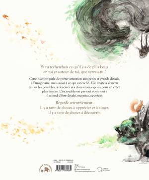 Cette histoire parle de prêter attention aux petits et grands détails à l'imaginaire, mais aussi à ce qui est caché. Elle invite à s'ouvrirà tous les possibles, à obsever ses rêves et ses espoirs pour en créer plus encore. L'incroyable est partout et en tout : il attend d'être décelé, reconnu, apprécié.