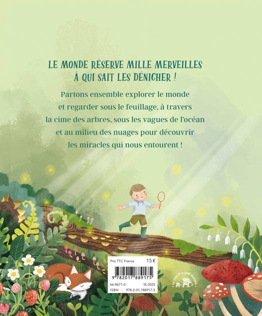 Partons ensemble explorer le monde et regarder sous le feuillage, à travers la cime des arbres, sous les vagues de l’océan et au milieu des nuages pour découvrir les miracles qui nous entourent !