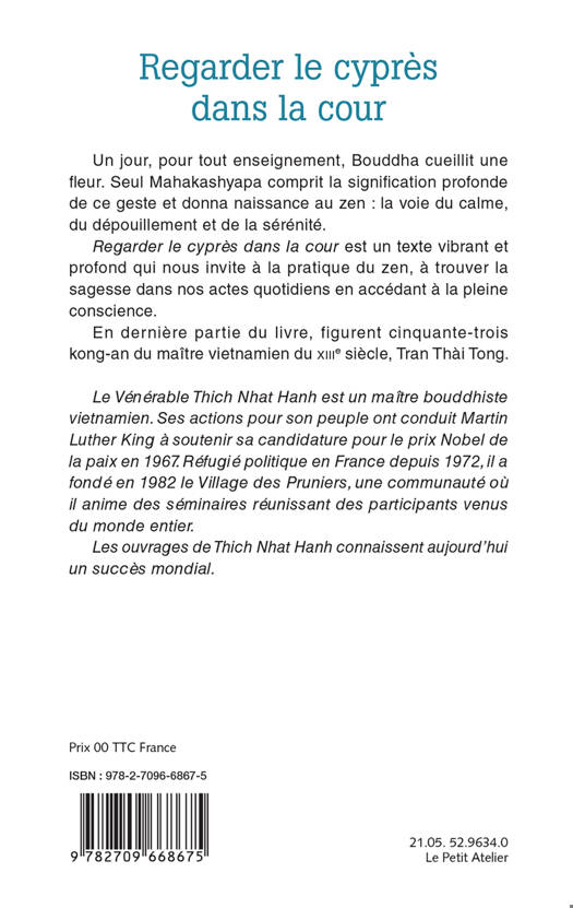 Regarder le cyprès dans la cour est un texte vibrant et profond qui nous invite à la pratique du zen, à trouver la sagesse dans nos actes quotidiens en accédant à la pleine conscience.
