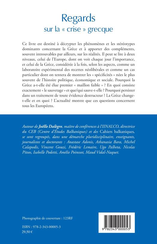 Ce livre décrypte les phénomènes et les stéréotypes dominants concernant la Grèce et apporte des compléments, souvent introuvables par ailleurs, sur les réalités. Il peut se lire au niveau de l'Europe et à celui de la Grèce, considérée à la fois comme laboratoire expérimental des recettes néolibérales et comme cas particulier. Pourquoi la Grèce a-t-elle été élue premier "maillon faible" ? En quoi consiste son "sauvetage" ? Pourquoi persister dans un traitement destructeur ? La Grèce change-t-elle et en quoi ?
