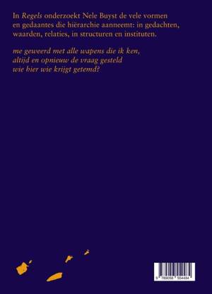 In Regels onderzoekt Nele Buyst de vele vormen en gedaantes die hiërarchie aanneemt: in gedachten, waarden, relaties, in structuren en instituten.