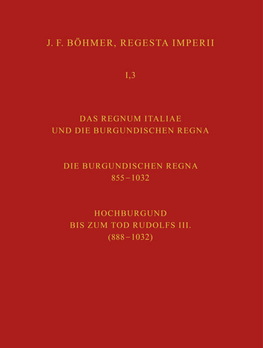 Band 3: Die Regesten Des Regnum Italiae Und Der Burgundischen Regna. Teil 4: Die Regesten Der Burgundischen Regna 855-1032. Fasz. 2: Hochburgund Bis Zum Tod Rudolfs III. (888-1032)