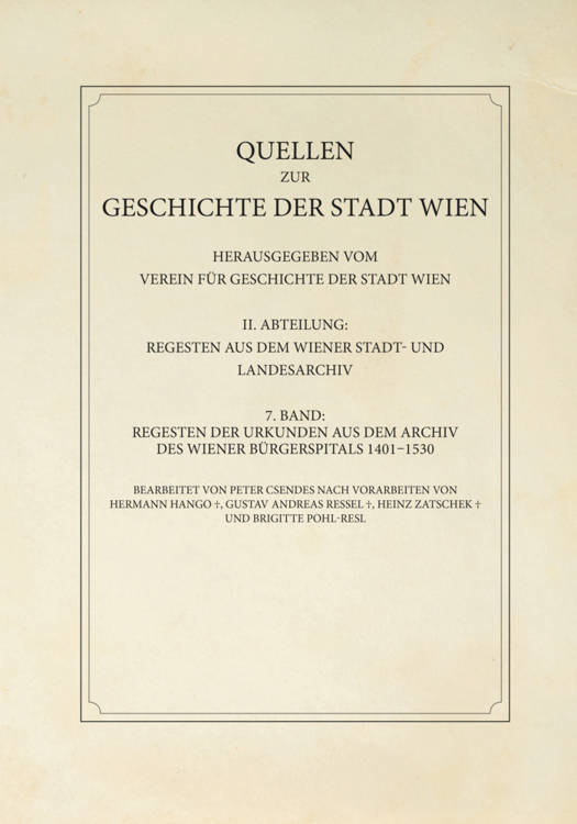 Durch rund 280 Jahre bis zur Zerstörung im Türkenkrieg von 1529 lag das Wiener Bürgerspital vor den Stadtmauern am Wienfluss. Diese wichtigste Versorgungs- und Krankenanstalt der Burger war über die Funktion hinaus für das soziale Gefüge der Stadt von großer Bedeutung. Das äußerte sich in zahlreichen frommen Stiftungen, die diese Institution auch zu einem bedeutenden Wirtschaftsfaktor werden ließen. Das Archiv des Bürgerspitals, das im Wiener Stadt- und Landesarchiv verwahrt wird, reicht bis zu den Anfängen im 13. Jahrhundert zurück. Den Kern aus dem genannten Zeitraum bilden rund 850 Originalurkunden sowie zahlreiche weitere Dokumente, die in zeitnaher kopialer Überlieferung vorliegen, vereinzelt auch in neuzeitlichen Abschriften. Die vorliegenden Regesten, die ein umfangreiches Namensmaterial für prosopographische und topographische Untersuchungen bereitstellen, sollen als Behelf für Forschung die Benutzung dieses außerordentlichen Quellenmaterials erleichtern, das nicht nur einen generellen Einblick in die Vorstellungen des späteren Mittelalters gibt, sondern auch die alltägliche Lebenswelt begreifbar und darstellbar macht.