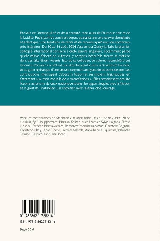 Une approche critique pluridisciplinaire de l’œuvre de Régis Jauffret qui articule de manière systématique l’analyse stylistique, la poétique narrative et l’enquête de réception, révélant ainsi la complexité d’une écriture qui résiste aux catégorisations habituelles. Cette étude examine les dispositifs esthétiques et éthiques qui caractérisent l’univers jauffretien, à travers l’analyse d'un corpus qui permet de saisir l’évolution et la cohérence d’une poétique singulière. En quête d'une meilleure compréhension des enjeux esthétiques et moraux qui traversent la littérature française contemporaine, contributeurs et contributrices s'interrogent sur les modalités complexes par lesquelles l’écriture jauffretienne parvient à solliciter et à déstabiliser simultanément l’empathie du lecteur, créant un effet de fascination/répulsion qui constitue peut-être la signature la plus caractéristique de cette œuvre. Un ouvrage qui se veut une référence pour toute étude consacrée à l’un des écrivains les plus singuliers et les plus dérangeants de la scène littéraire française actuelle.